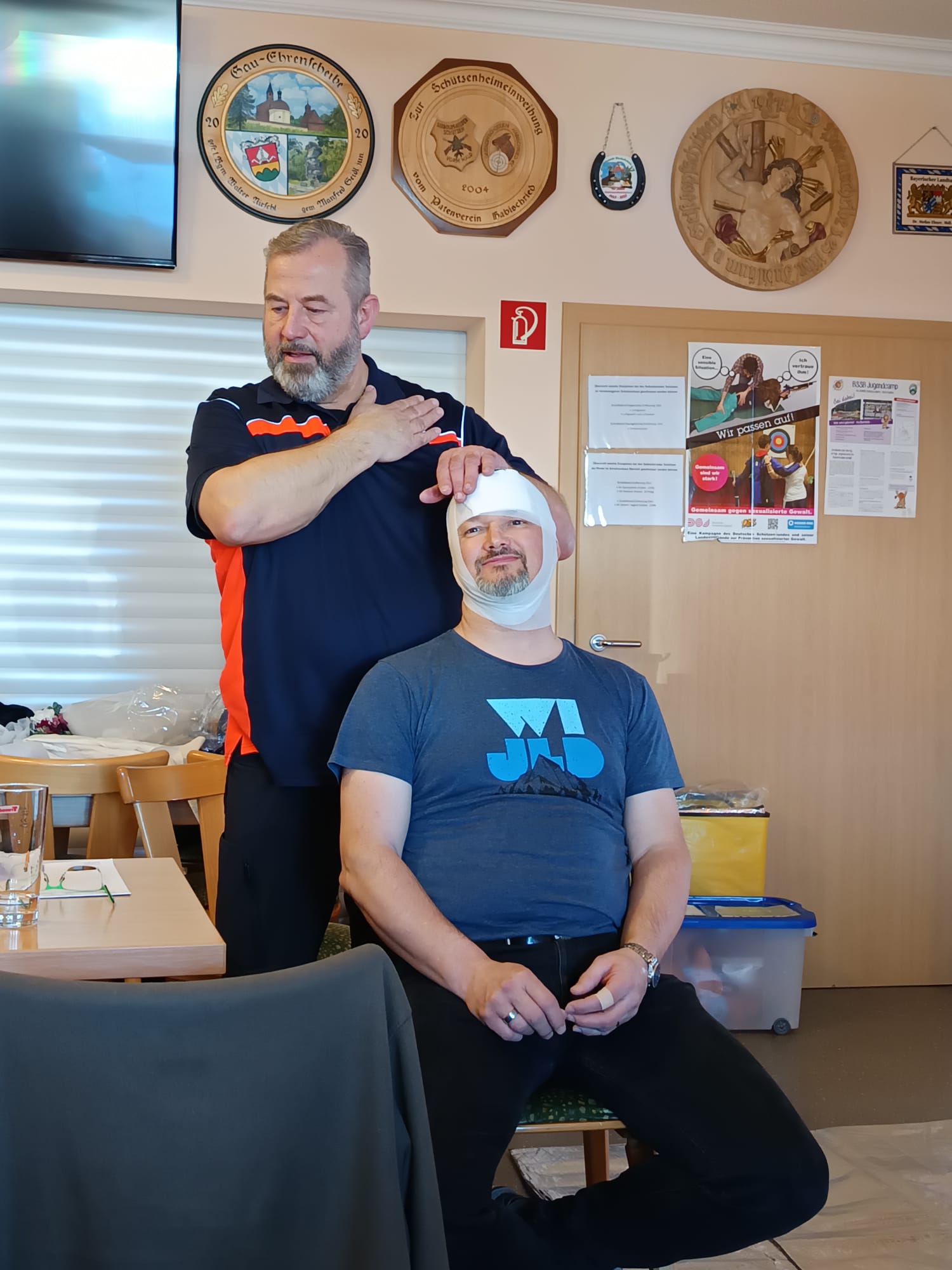 Geleitet wurde der Kurs von Notfallsanitäter Michael Spitzenberger. Er vermittelte praxisnah die wichtigsten Handgriffe und Maßnahmen, die im Ernstfall entscheidend sein können. Zu den behandelten Themen gehörten unter anderem das richtige Absetzen eines Notrufs, der Umgang mit bewusstlosen Personen, die stabile Seitenlage sowie die Versorgung von Frakturen, Verstauchungen und Wunden.