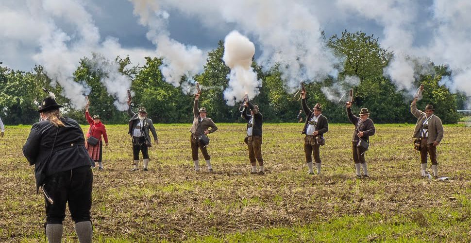 Böllergruppe beteiligt sich am Platzschießen bei der Pasinger Vorwiesn